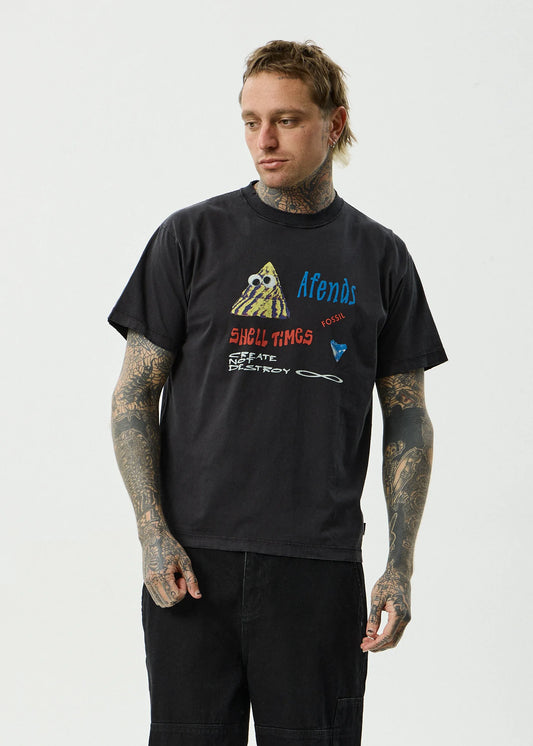 Shell Times Recycled Boxy Fit Tee - Stone Black