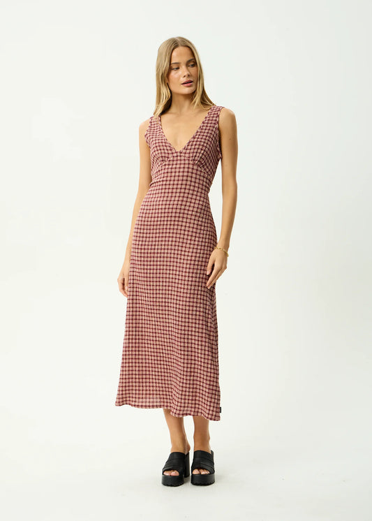 Capricorn Seer Sucker Maxi Dress - Burgundy / Beige Check