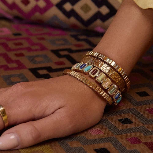 The Elkie Gold Bracelet is your ticket to effortless sophistication. Adorned with a curated selection of elegant stones, this vintage-inspired piece strikes the perfect balance between timeless charm and modern flair. Whether you're dressing up for a special occasion or elevating your everyday look, Elkie delivers that coveted statement-making sparkle without trying too hard. A true gem that lets your style do the talking.