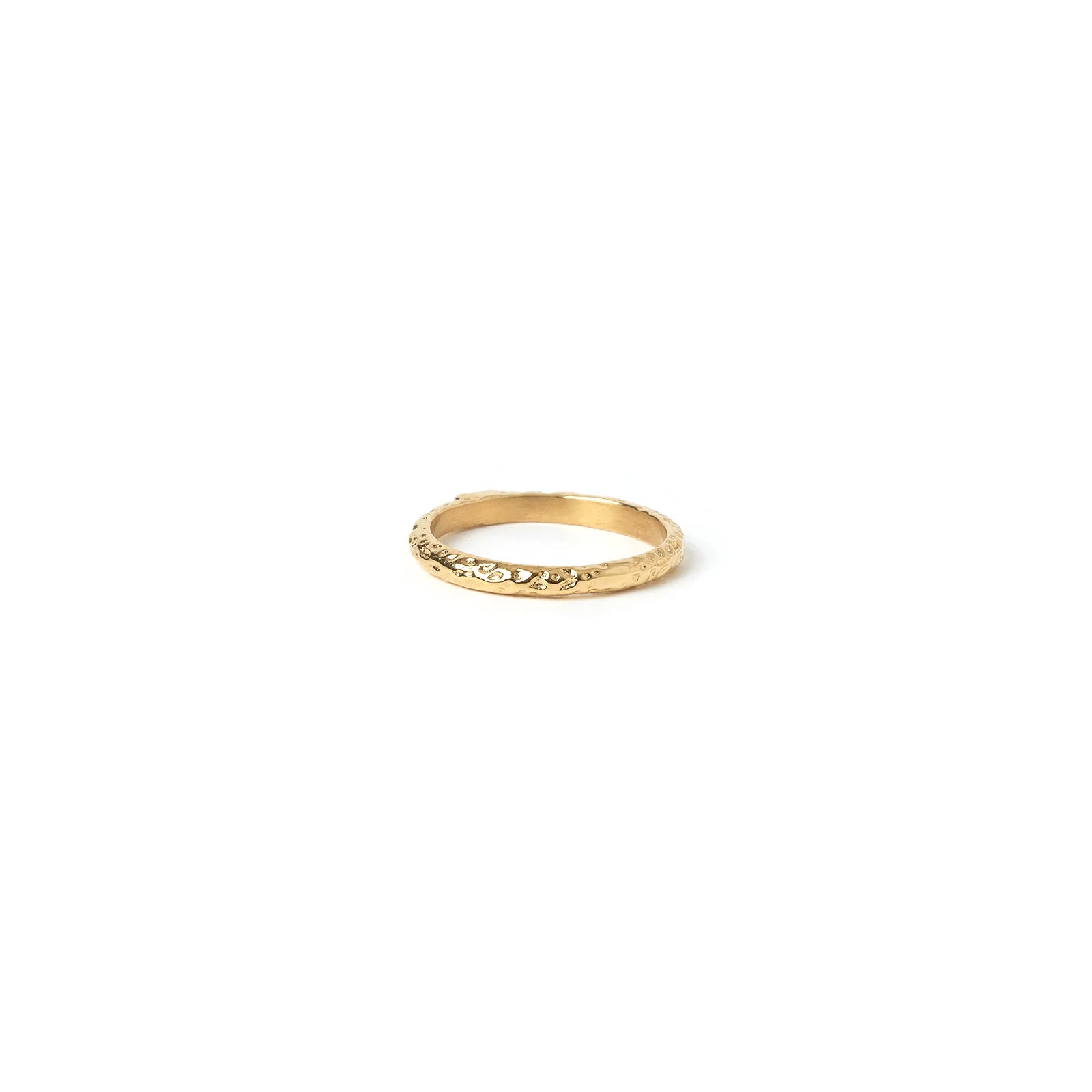 Add a touch of texture to your style with our sparkling Emperor Gold Stacking Ring! Perfect for stacking and crushing the fashion game.