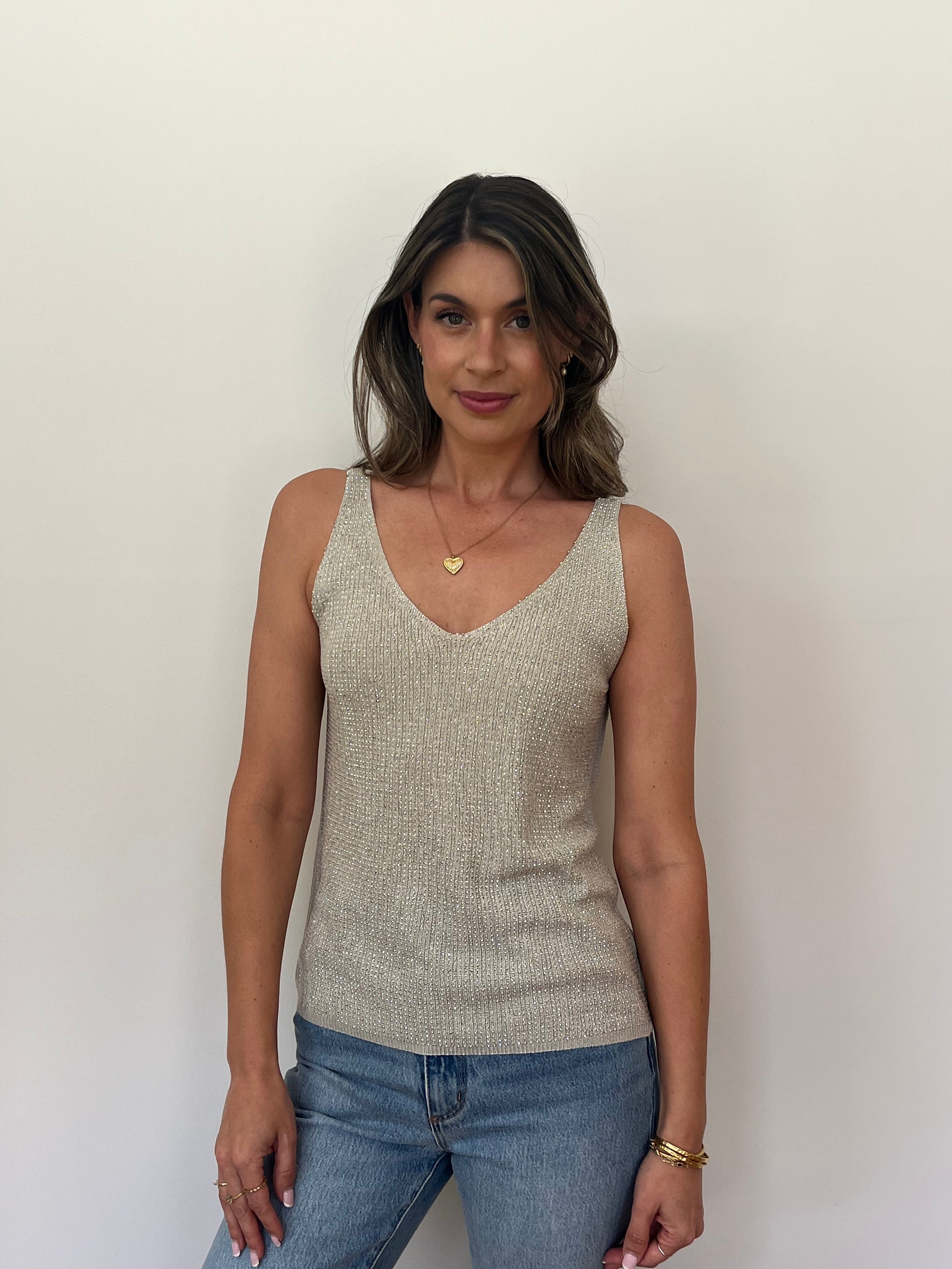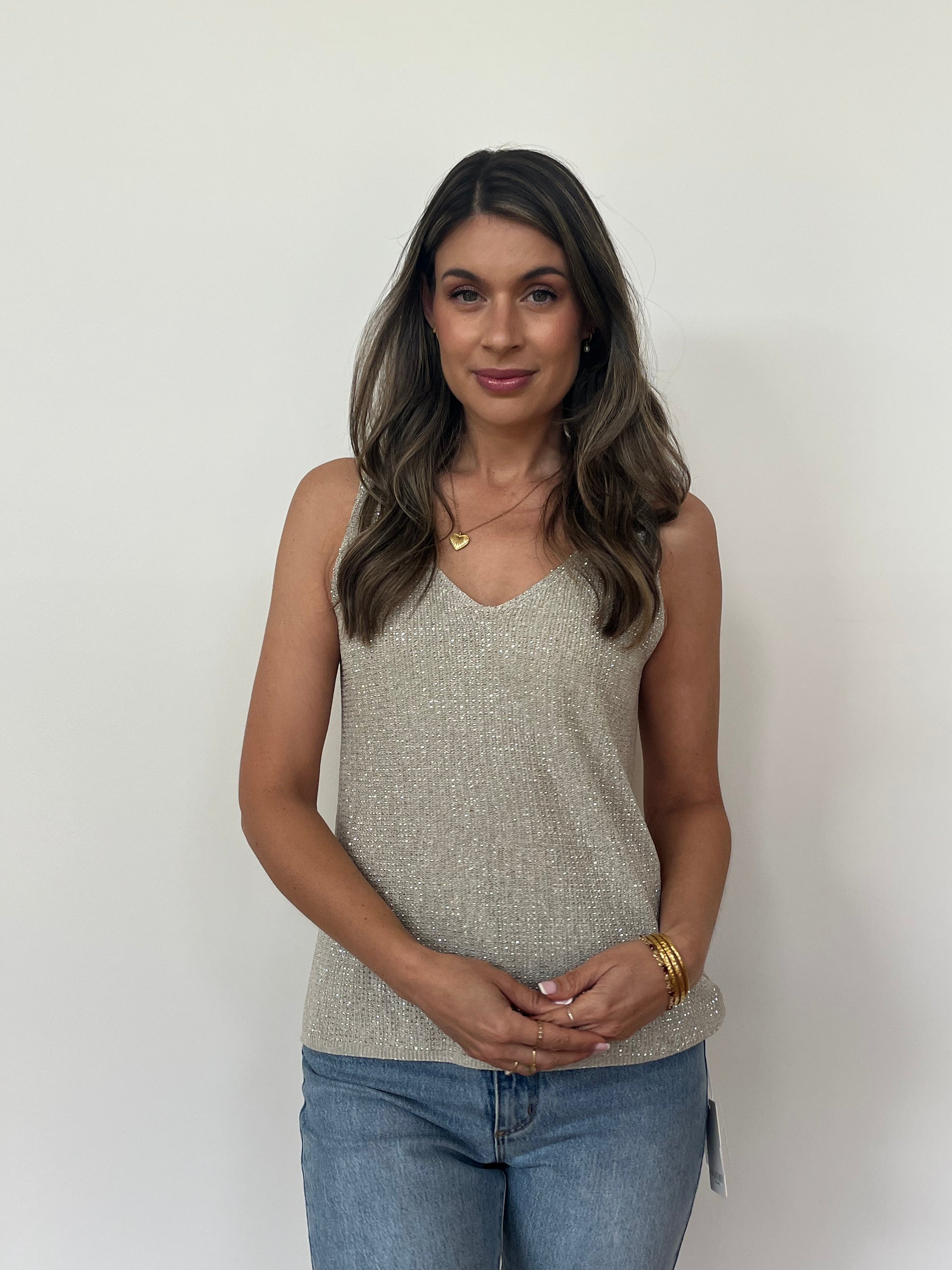 Shimmer through your day in this dazzling glitter cami that's equal parts glam and versatile. Whether you're layering it under a jacket or letting it shine solo, the champagne hue catches light beautifully for an instant style upgrade. Dress it down with jeans or elevate it for nights out—this sparkly essential does it all. Choose from five gorgeous shades: black, champagne, olive, burgundy, and coffee. Find your perfect sparkle match and get ready to turn heads.