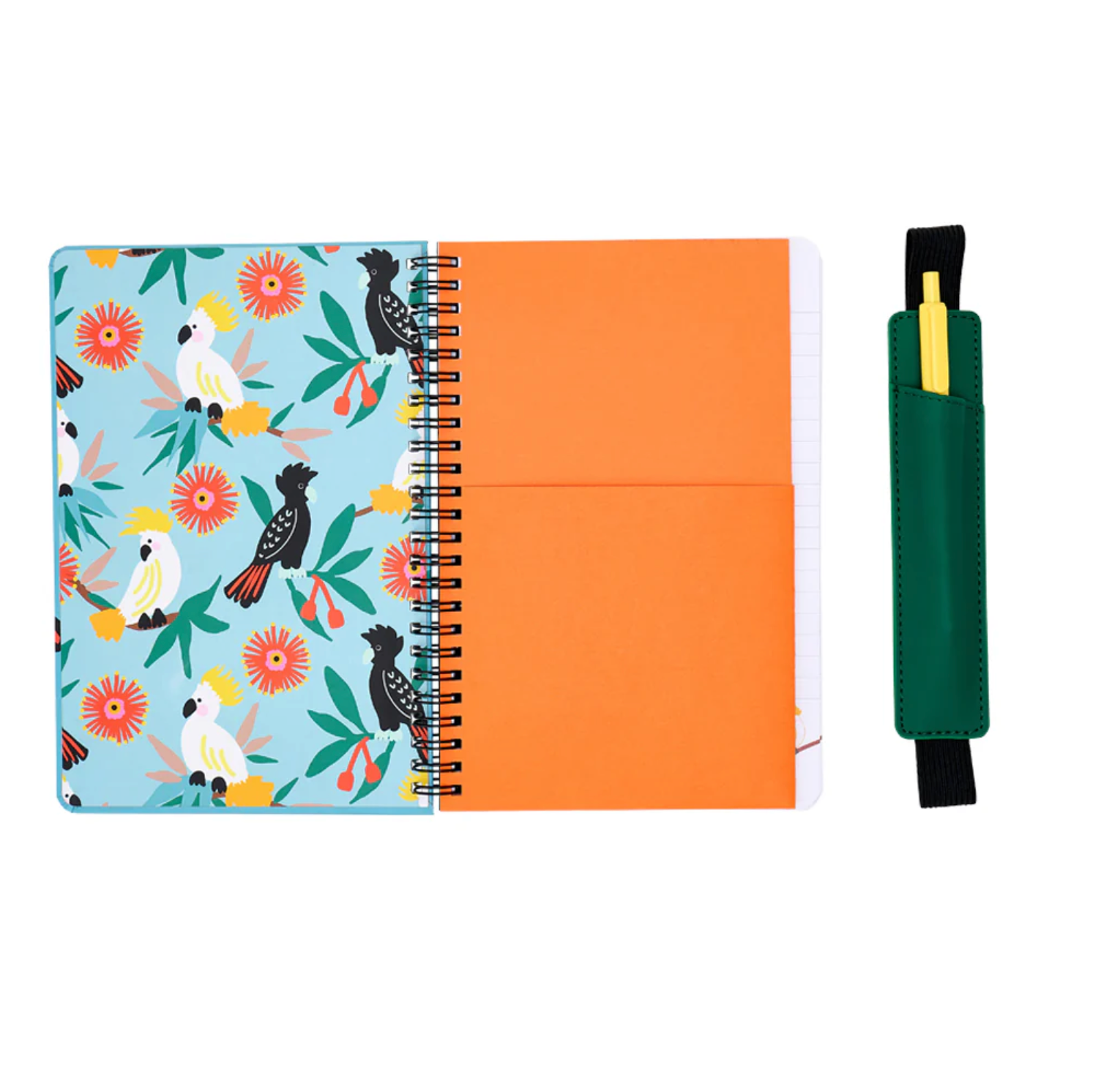 Let your imagination soar with the Cockatoo notebook! This A5 hardcover gem offers 80 ruled pages — ideal for jotting down your brightest ideas or spontaneous doodles. Equipped with a convenient inner pocket, spiral binding, and a stretchy vegan leather pen loop securing a smooth black ballpoint, it keeps your notes tidy and your pen close at hand. Playful, practical, and made for every spark of creativity—Cockatoo is the perfect place for your next big inspiration!