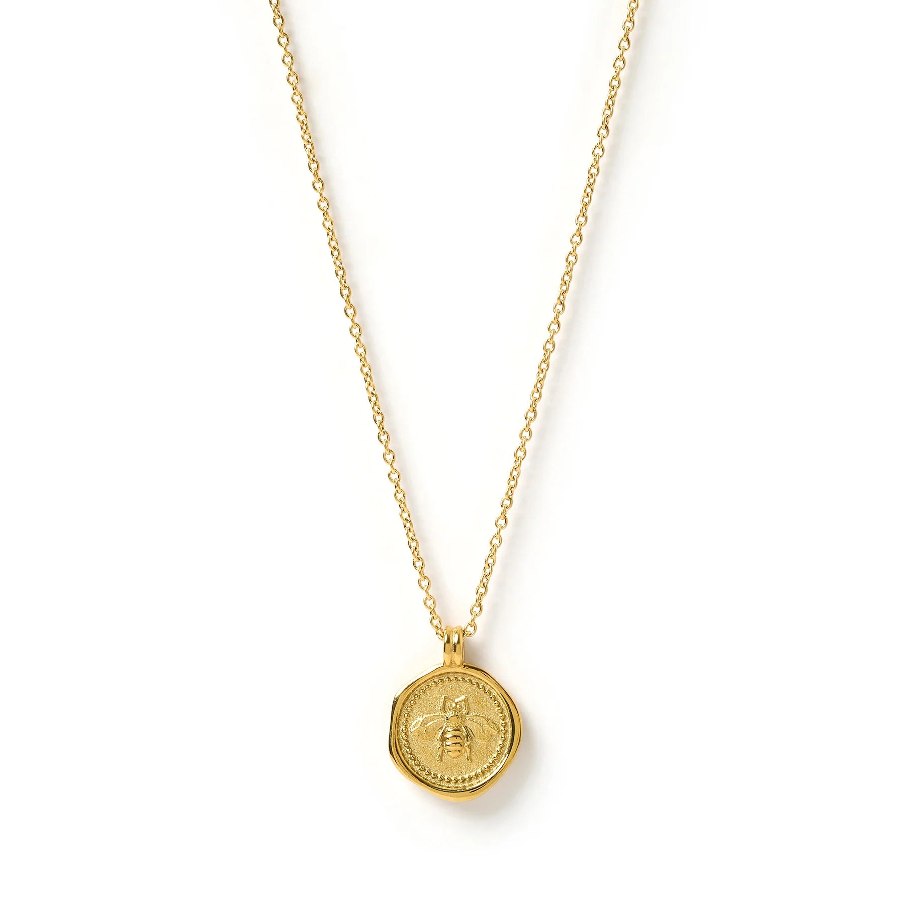 Introducing the Queen Bee Gold Necklace, a stunning pendant that adds a touch of vintage charm to any stack. Its charming wax seal design and adorable golden bee will surely make heads turn. Upgrade your style with this truly unique piece.